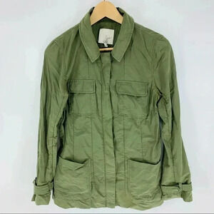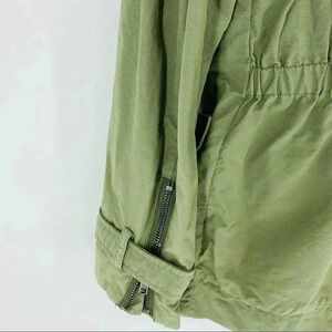 Classic long field jacket in olive nylon. Light discoloration at pits- see last pic for detail. not noticeable when wearing.