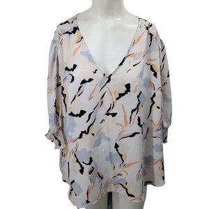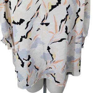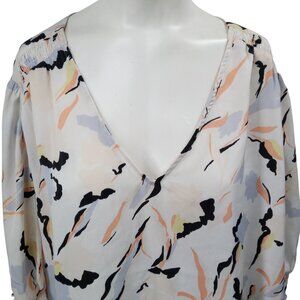 Joie V Neck Half Sleeve Abstract Smocked Blouse Size XXL Anthro Shirt Career