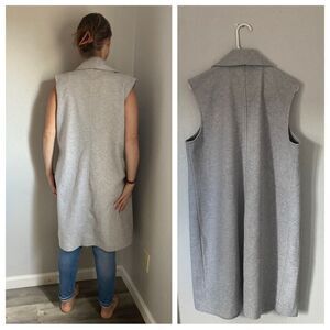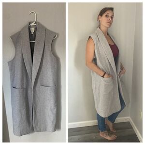 Joie Vest Sleeveless Cardigan Pocket Vest Gray Long XL Minimalist