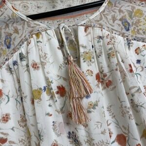 Joie Vesta Dress Small Womens Silk Floral Lined Sheer Boho Tassel Tie Porcelaine