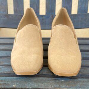 Joie Wevenly Womens Heeled Loafer 9.5M Tan Suede Block Heel Square Toe Slip-On