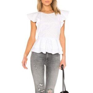 Joie White Dots Ruffle Bottom Short sleeve peplum blouse Size S