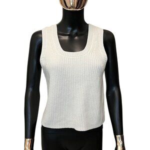 Joie sweater vest, white knit vest, sleeveless sweater, designer knit top, minimalist sweater vest, layering piece, modern classic, open knit back, capsule wardrobe, size medium sweater, new with tags Joie