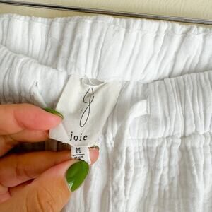 Joie White Muslin Crinkle Cotton Beachy Drawstring Pull On Pants
