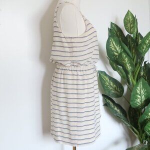 Joie White Navy Striped Silk Sleeveless Mini Dress Drawstring Waist Size XS