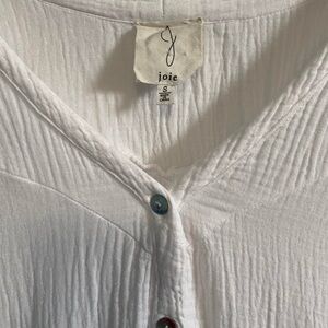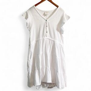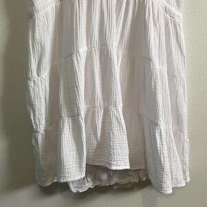 This charming sundress by Joie features a smocked waist and flutter cap sleeves, offering a relaxed yet stylish look. The V-neckline and mini length make it perfect for casual outings, while the light fabric ensures comfort throughout the day. Joie White Gauzy Cotton Tiered Sun