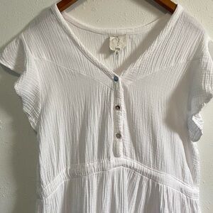 Dress. It’s 100% natural fiber cotton button-up seashell front, tiered hem and ruffle