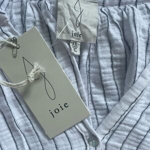 This Joie top is super versatile! It features a v-neckline, pearlescent buttons at the bust, flattering flutter sleeves and a flowy round hem. This gauzy material blend is lightweight and comfortable. Size 3X. NWT.