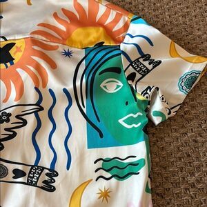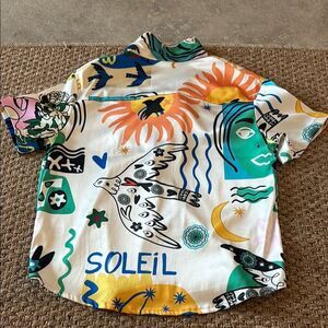 Elevate your style with this Joie blouse, featuring a modern artistic print in white and green. The lightweight fabric and playful design make it perfect for casual summer outings. Its contemporary aesthetic is highlighted by a mix of geometric and organic shapes, ensuring you stand out effortlessly.