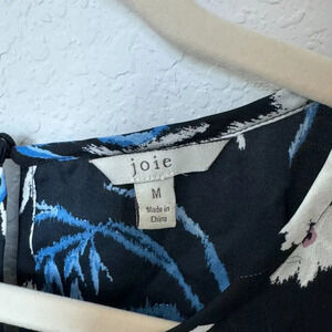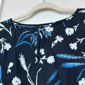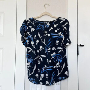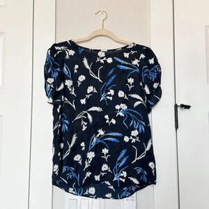 Joie Wira Navy Floral Silk Short Petal Sleeve Top Size M