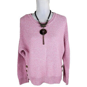 Joie ~Woman Size L~ Pink Marled Relaxed Fit Button Side Pullover Boxy Sweater.