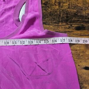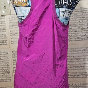 Joie Tunic Medium Gorgeous silky fuschia deep pink/purple tank with racer back from Joie. Cotton jersey at neck and arms for a comfortable fit for those hot days! Rounded high low bottom hem, front length is 26" and back is 28". Unstretched chest measurement is nearly 18" so M/L would also fit well!