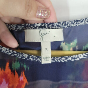 Joie Women's 100% Silk Bohan Floral Patchwork Top Blouse Blue Orange Size Small