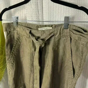 Joie Women’s 2 Brown 100% Linen Crop Capris Ankle Ties Beach Hobo Cargo Pants