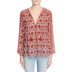 Joie Women's Auberon B Print Silk Top In Coral Rose Size M