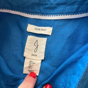 Joie Womens Blue Sleeveless Button-Down Linen Shirt Size L resort lightweight