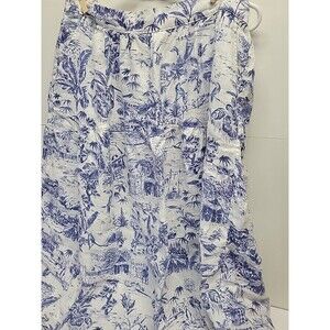 Joie Womens Blue White Floral Tropical 100% Linen Maxi Skirt Pull On Pockets XL