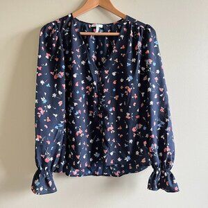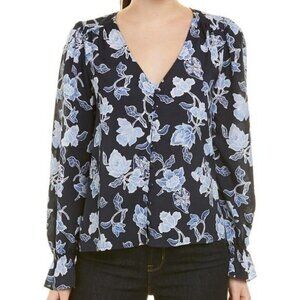Joie Women's Bolona Blouse Long Sleeve Printed Navy Button Front Top Size M