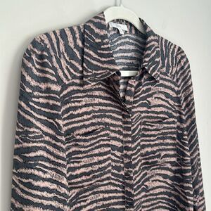 Joie Women's Brown Zebra Talma Long-Sleeve Button Mini Shift Shirt Dress Size S