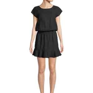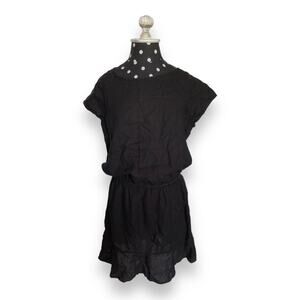 Joie Womens Dress Size M Quoara Black Linen Mini Blouson Cap Sleeves