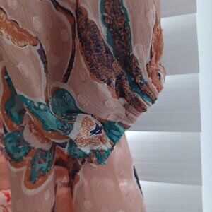 Joie Women’s Floral Sheer Blouse Top S/P – Blush Multicolor Ruffle Neck NWT