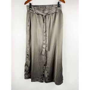 Joie Women's Gray Satin Wide Leg Cropped Pullon Pants Size M Elastic Waist. Condition is Pre-owned.
