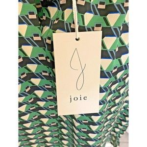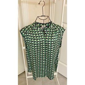 Joie Womens Green Geometric Sleeveless Blouse NWT High Neckline Hidden Placket