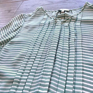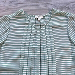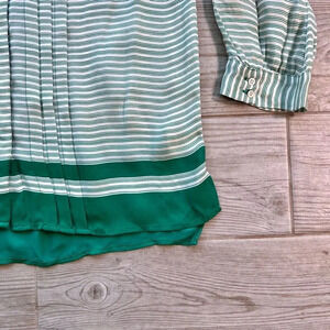 Joie Womens Green Striped Silk Pintuck Pleated Long Sleeve Blouse Size Small