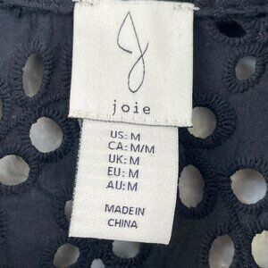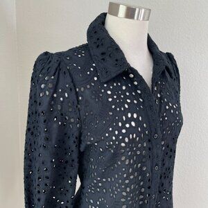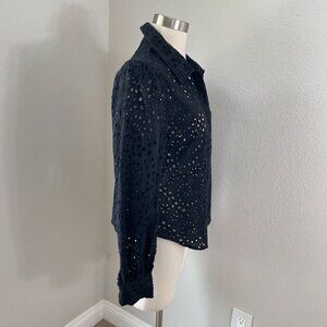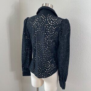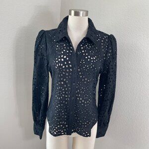 Joie Womens Medium Black Eyelet Button Up Shirt Long Puff Sleeve Blouse Top