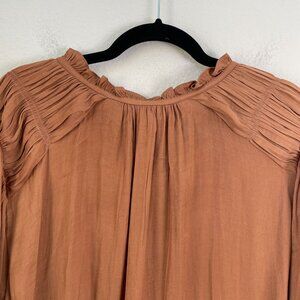 Joie Womens Plus 2X Rust Orange Long Sleeve Ruffle Neck Blouse Top Satin Shirt