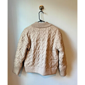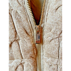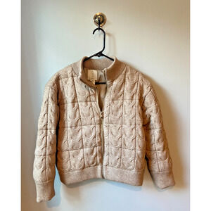 Joie Womens Quilted Beige Knit Puffer Bomber Cable Knit Jacket Full Zip, Medium