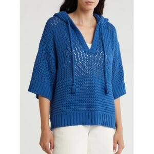 Joie Womens S Aurora Open Stitch Hoodie Sweater in Blue Quartz NEW