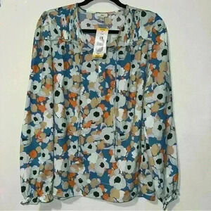 Joie Women's S Top Long Sleeve V Neck Peasant Blouse Floral Print Multi Medium
