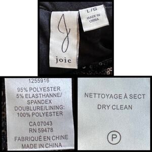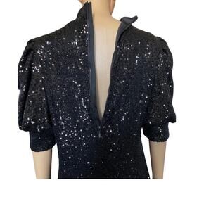 Joie Women's Sequin Puff Sleeve Back Zip Size Large Black Cocktail Evening Dress