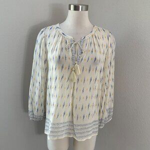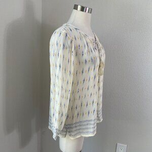 Joie Womens Small 100% Silk Printed Peasant Blouse With Tassel Tie Neck Shirt