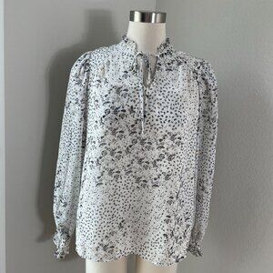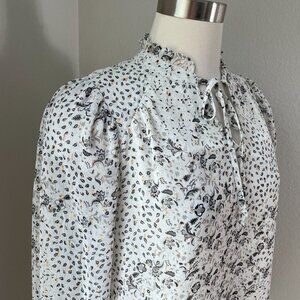 Joie Womens Small Floral Blouse Long Sleeve Ruffle Tie Neck Shirt Top