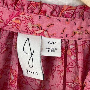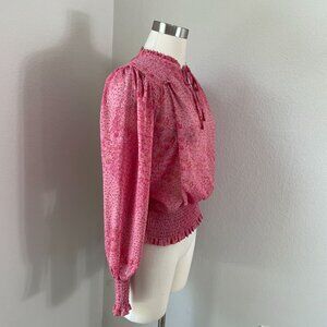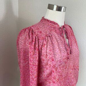 Joie Womens Small Pink Floral Long Sleeve Blouse Ruffle Tie Neck Shirt Top