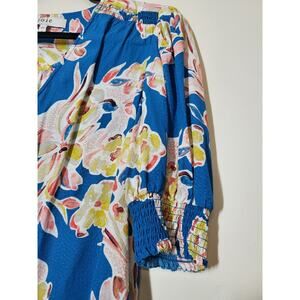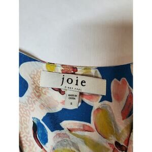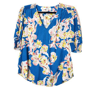 Joie Womens Small Top Blue Floral Viscose Puff Sleeve V-neck Blouse