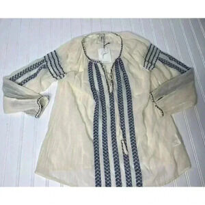 Joie Womens V-Neck Peasant Blouse Top Calonice Embroidered Tassel XS NEW. 1108