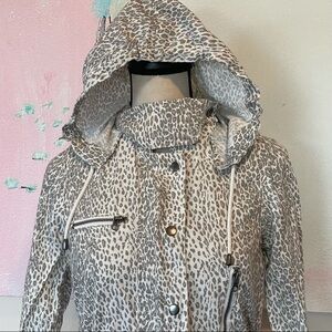 Joie Womens sz XS White Gray Barker Jacket a' Leopard Zip Toggle Hood