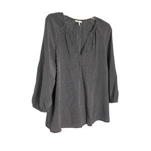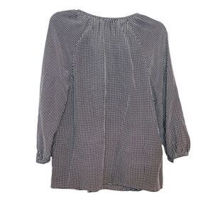 Joie Women’s 100% Silk Black White Window Pane Blouse V-Neck Pullover Size Small