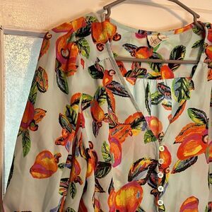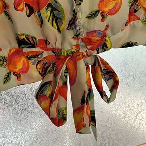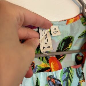 Joie Women’s Blue Tropical Print Button Up Puff Sleeve Cropped Blouse Top L