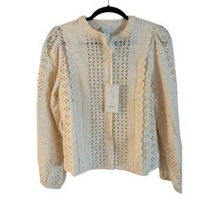 Joie Woven Peasant Top Boho Blouse Shirt Eyelet Ivory Cream Embroidered Size M NWT