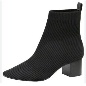 Joie X Revolve NEELY Black Ribbed Knit Stretchy Block Heel Sock Ankle Booties