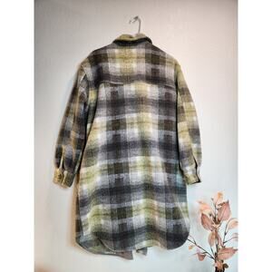 Joie XL Plaid Shacket Jacket Green Gray Oversized Button-Up Shirt Coat 38"
