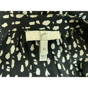 Joie XS Black White Addie B Abstract Blouse in Caviar 100% Silk V Neck