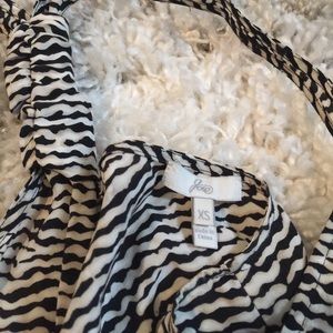 Great for going out! A dressy Joie tank in a black and white modern stripe print. Features a fun knot detail on the back. EUC.