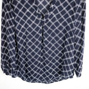 Joie XS Top Blue White Checkered Blouse Silk Boho Peasant Chiffon Navy 367