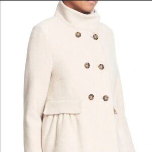 Joie Yara Wool Peacoat Peplum New Cream Ivory Beige M Military Officer Coat