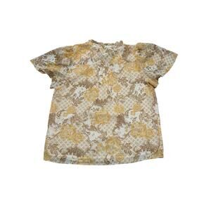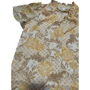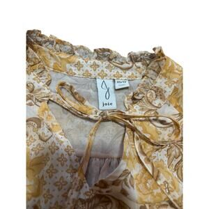 Joie Yellow Floral Metallic Ruffle Tie Neck Blouse Shimmer Size XS